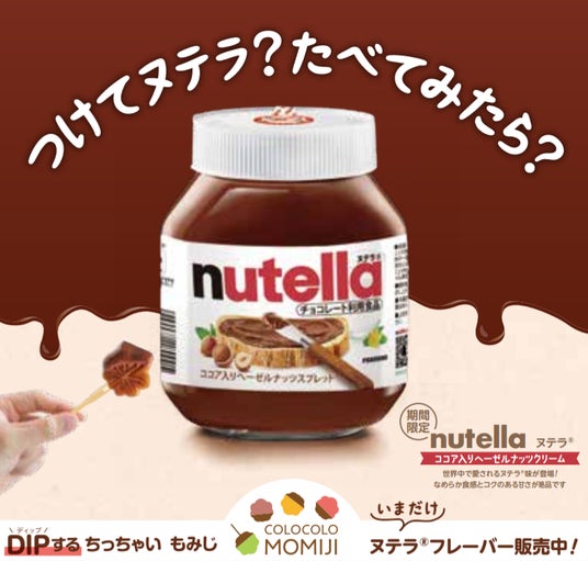 焼き立てあつあつの一口サイズのコロコロもみじに、ココア入りヘーゼルナッツスプレッドクリーム「Nutella(R)」をたっぷりつければみんな笑顔に!