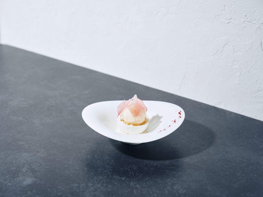 桃の上品な甘さと、マスカルポーネ、アールグレイパンナコッタの濃厚さを合わせた夏らしいさっぱりとしたデセールです。メレンゲの食感や見た目の華やかさもお楽しみください。
