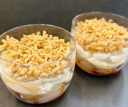 優しい甘さの自家製白餡を土台に、もっちりとした食感が楽しいおもちを入れ、その上には、とろけるような口当たりの生クリームに、コク深くも後味すっきりとした黒蜜を丁寧に混ぜ込みました。自家製和栗ペーストの上品な風味に、黒蜜のコクが絶妙なアクセントとなり、一口ごとに新しい発見があります。最後まで飽きさせない奥深い味わいです。