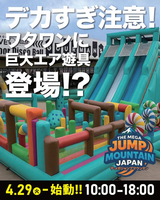 巨大エア遊具「THE MEGA JUMP MOUNTAIN JAPAN(ザ・メガジャンプマウンテン)」が4月29日(火・祝)より期間限定オープン!ワタワン芝生エリアにて開催