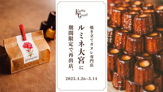 東京・蔵前にあるSNSで話題の焼き立てカヌレ専門店「KURAMAE CANNELE(クラマエカヌレ)」(運営:CLASSIC INC.、代表取締役 : 萱場俊克、本社 : 東京都渋谷区)は、2025年4月26日(土)~5月14日(水)にルミネ大宮にて催事を実施いたします。