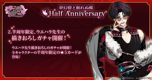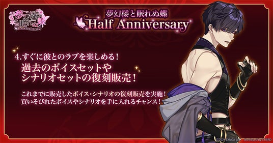 おかげさまで「夢幻楼と眠れぬ蝶」は、5月19日(月)にてハーフアニバーサリーを迎えます!