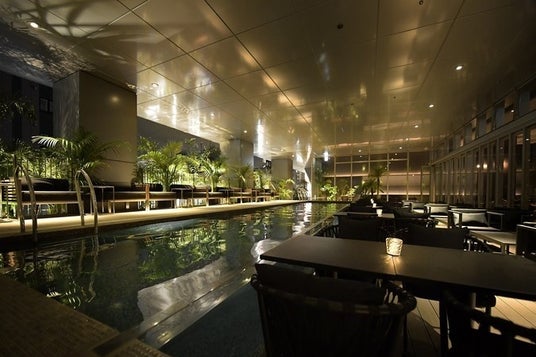 光が差し込むリゾート感のある雰囲気の中で、クラフトビールをお楽しみいただけます。また、夜になるとライトアップされ、幻想的な空間が広がります。