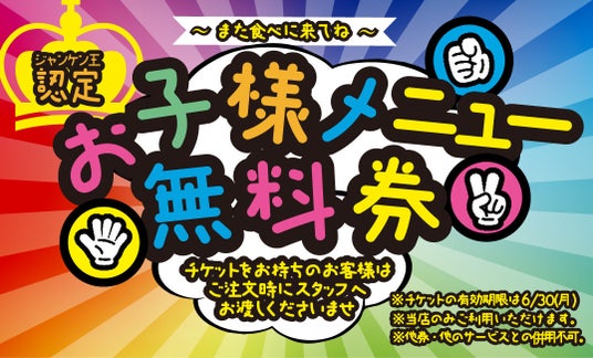 ※次回使用できるお子様メニュー無料券の有効期限は6月30日(月)まで。