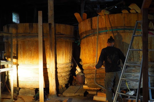 文政12年(1829年)創業、196年続く老舗醤油蔵(株式会社元屋商店)の木桶や釜をサウナ施設に再利用