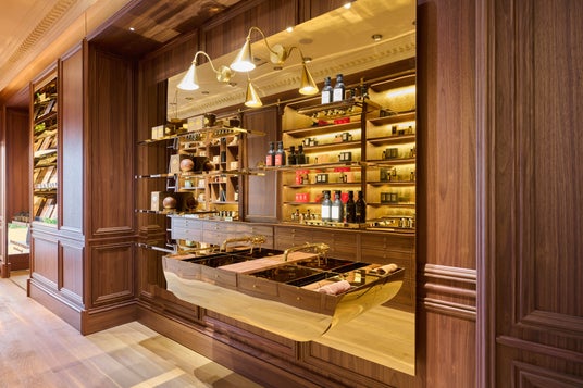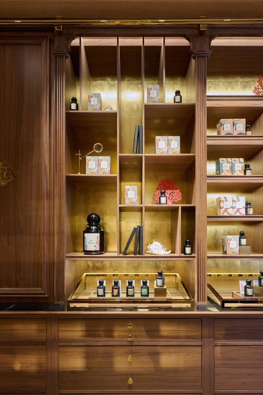 ブランド創業当時1970年台後半のフランスの建築様式とコンテンポラリーなデザインを融合させた内装。素材の美しさを最大限に際立たせるフランスの伝統家具工芸の魅力を感じることができるパリ・サントノレにある本店のコンセプトと同じく、ラルチザン パフューマーの世界に深く浸っていただける店舗となっています。