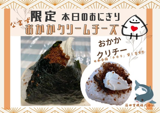 今回のイベントに合わせて企画したのは「なまずおかかクリームチーズおにぎり」です。"なまず"に見立てて、おかか(鰹節)の旨味をベースに、まろやかなクリームチーズを合わせました。コクがありつつもやさしい味わいで、子どもから大人まで幅広く楽しんでいただける一品です。奇跡のお米「女神のほほえみ」で丁寧に握り、ほっとする美味しさと遊び心を込めた限定おにぎりに仕上げました。