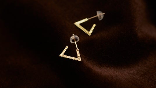 古代のお守りの形から生まれた逆三角形のモチーフ。CASUCAの代表的なジャギーのテクスチャーが光をはらんでキラキラと特別な輝きを放ちます。