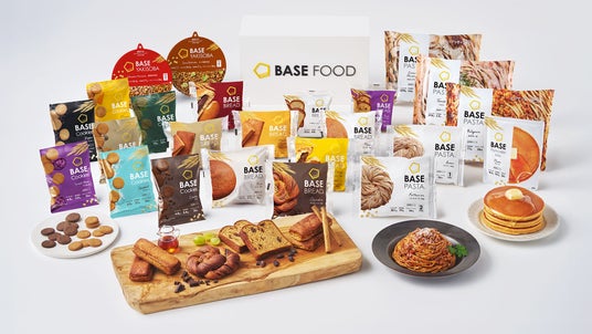 「BASE FOOD」は、1食で1日に必要な栄養素の1/3がバランスよくとれる完全栄養の主食です。全粒粉や大豆、チアシードなど主に自然由来の厳選した10種類以上の原材料を使用しながら、栄養バランスとおいしさを独自のテクノロジーによる配合と製法で実現。たんぱく質や食物繊維、26種類のビタミン・ミネラルなど1日に必要な33種類の栄養素をとることができるスマートフードです。