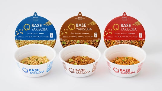 「BASE YAKISOBA」シリーズは、2025年1月に発売した香ばしくまろやかなソースの旨みが広がる「BASE YAKISOBA ソース焼きそば」と、4種のスパイスの辛味と旨味が広がる「BASE YAKISOBA 旨辛まぜそば」、そして翌2月に発売したスパイス引き立つあっさり塩味香る「BASE YAKISOBA 塩焼きそば」の3種のフレーバーを展開。