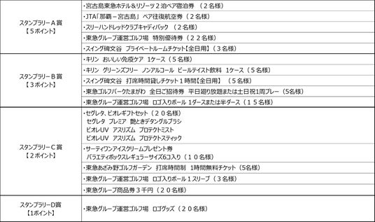 地区イベントの参加者には、参加賞として全員に、特別協賛各社(キリンビール株式会社、キリンビバレッジ株式会社)の飲料と、花王株式会社のセグレタ、ビオレの商品をプレゼントします。この他、1ラウンドごとにスタンプを貯めて応募すると抽選で豪華賞品が当たるスマホスタンプラリー(※2)やInstagram投稿キャンペーンを同時開催します。スタンプラリー賞品には、宮古島東急ホテル&リゾーツペア宿泊券やサンクスフェスタ会場のスリーハンドレッドクラブキャディバックやゴルフプレー券などをご用意しています。特別会場の参加者も参加賞やスタンプの取得ができます。