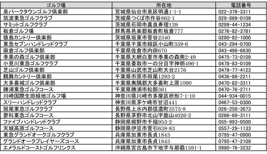 ※開催期間、開催方法、プレー代等は会場ごとに異なります。詳細は各会場へ直接お問い合わせく
