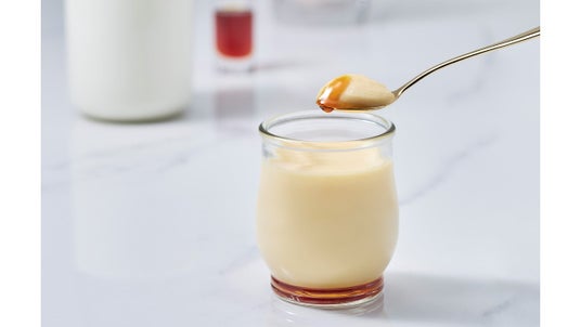 ぷるんとなめらかに焼き上げた、たまごの風味が豊かなカスタードプリンに琥珀色のすっきりとした苦みのカラメルソースを合わせました。厳選した素材をガラス製の容器でじっくり蒸し焼きにすることで独特のなめらかな食感を生み出しました。