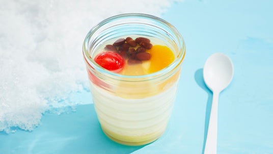 九州の夏の風物詩のかき氷「白くま」をイメージしてプリンに仕立てました。とろりと甘い練乳ソースに氷砂糖を使用した上品ですっきりとした甘さのミルクプリンに、さくらんぼ、みかん、小豆、パイナップルをトッピング。見た目にも楽しい、新しい夏のプリンをお楽しみください。
