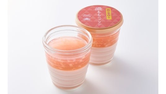 夏に旬を迎える、ジューシーで甘みが強い"桃" の味わいを、とろける食感の2層仕立てで楽しめる、果実感あふれるプリン。桃果汁のすっきりとした甘さとみずみずしさが感じられるとろける桃のプリンに、桃の果肉入りのとろっと食感のゼリーを重ねました。夏にぴったり、みずみずしくとろけて果実感あふれる "桃づくし" のプリンです。