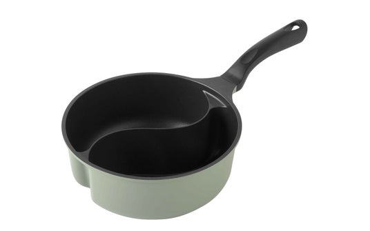 【ダブルクック片手鍋20cm オリーブ】は一度に2品同時調理ができる片手鍋です。