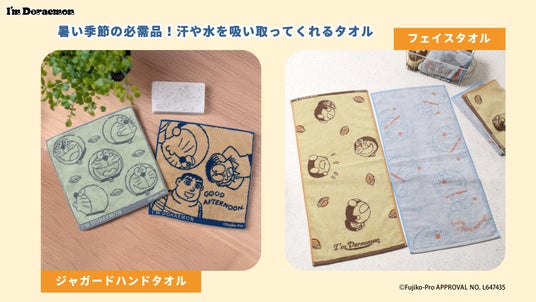吸水性に優れた生地で、使い心地も抜群。まんぷくな姿のドラえもんや様々な表情のドラえもんが描かれた、大人も使いやすい落ち着いたデザインです。