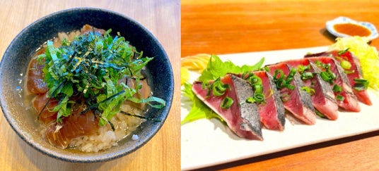 昔ながらのケンケン漁(かつお漁)で採れたカツオの茶漬け等
