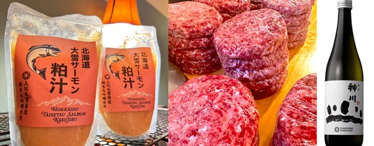 大雪山の恵みが詰まった「北海道大雪サーモン粕汁」・大雪高原牛100%のハンバーグ・大雪酒造の日本酒等