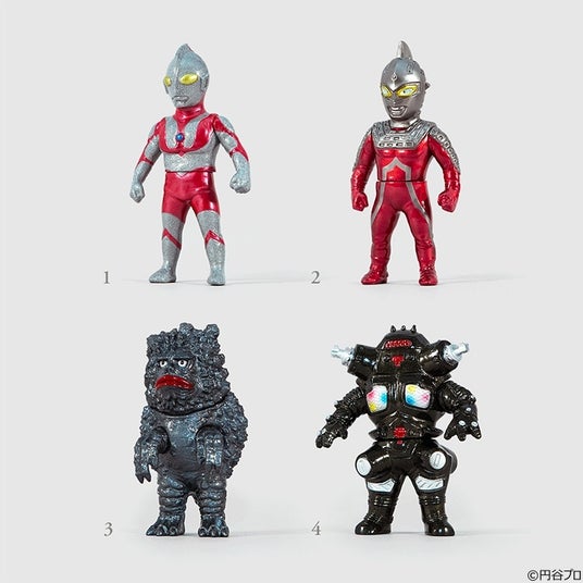 1. ウルトラマン IBUSHI METALLIC LAME Ver.7,480円2. ウルトラセブン IBUSHI METALLIC Ver.7,480円3. ガラモン MONONOKE IRON GRAY Ver.7,480円4. キングジョー MONONOKE METAL BLACK Ver.8,690円