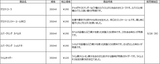 良品計画は、「感じ良い暮らしと社会」の実現に向けて日常生活の基本を支えることを目指し、日々の暮らしを豊かにする商品を提供しています。食品においては、食の楽しさとおいしさをお届けするべく、地域や生活スタイルの変化に合わせて商品・サービスを企画・販売しています。今回は炭酸飲料「クラフトコーラ」、「クラフトジンジャーエール辛口」、「スパークリング カベルネ」、「スパークリング シャルドネ」、「ライムサイダー」の5種を発売します。