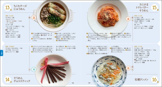 毎日そうめんを食べ続け、考案したレシピは1500以上という著者が贈る本書は、そうめん好きはもちろん、ふだんの食生活の強い味方となってくれる1冊です。