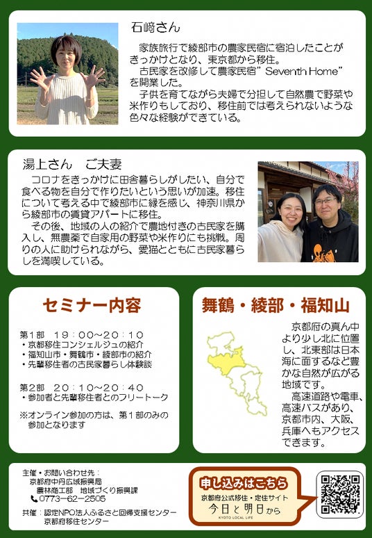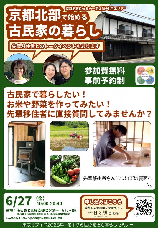 先輩移住者と交流できる移住セミナー ~京都北部の古民家暮らしをテーマに6月27日に東京で開催~