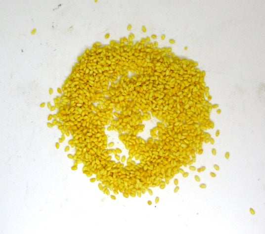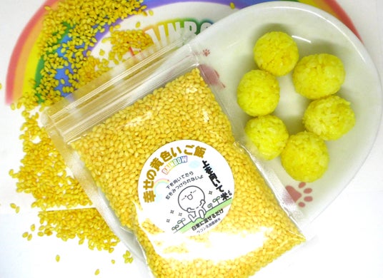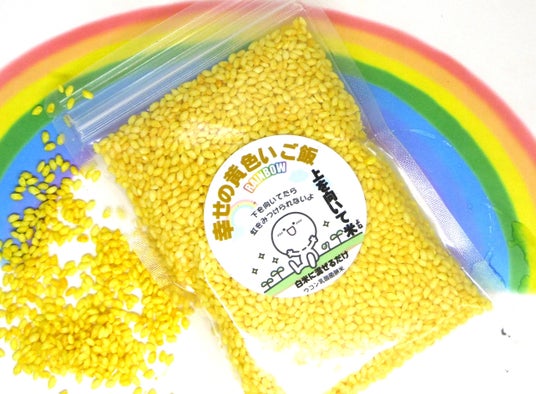 白米に約10%混ぜるだけで炊いたら幸せの黄色いご飯になります。(白米一合に大さじ一杯が目安)
