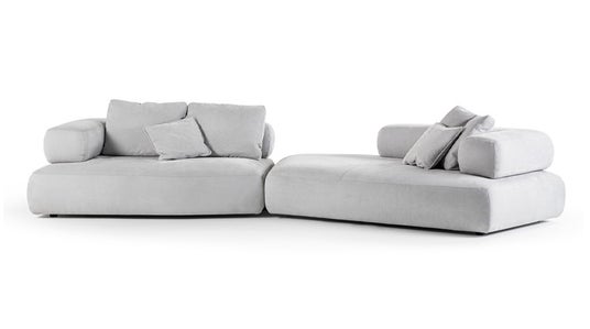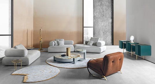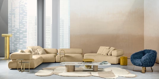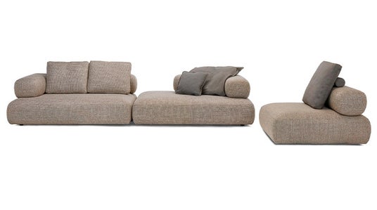 新作モジュール式ソファ「Cholet(ショレ)」は、緻密なスタディから生まれた幾何学的フォルムと、柔らかな背もたれクッションや装飾クッションとの対比が特徴です。30以上の異なる形状とサイズのモジュールから構成され、500通り以上の組み合わせが可能です。様々なリビングスペースに合わせて自由に配置でき、壁際や部屋の中央、角度をもたせたレイアウトにも対応します。素材には上質なファブリックとレザーをお選び頂け、中でも上質なツイード生地は他では見られないエレガンスを実現します。また、丸みを帯びたアームレストと背もたれが一体となったデザインは、広々としたシーティング体験をもたらし、日本の洗練された住空間にもふさわしいソファとなっています。
