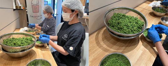 Re.BooooN!(リブーン)では、この"もったいない"現状に向き合い、「実のままのぶどう山椒を、もっと手軽に、もっと自由に味わえる形にしたい」という想いから商品化をスタート。届いた山椒は鮮度の高いうちに一粒ずつ手作業でもぎ取り、香りと食感を損なわないよう丁寧に加工しています。