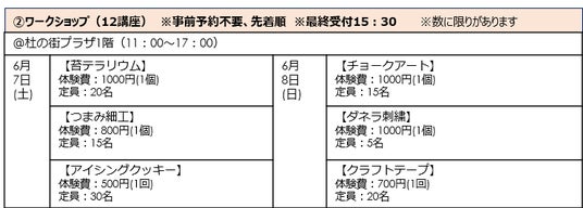※ワークショップ・販売購入は「杜の街グレース」駐車サービスの対象外
