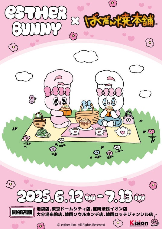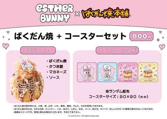 韓国発の大人気キャラクター「エスターバニー」と「ばくだん焼本舗」のコラボが開催決定!描き下ろしコラボイラストを使用したグッズなどが多数登場!