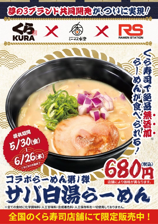 「くら寿司」×「らーめん香澄」×「ラーメンステーション」の3社間共同開発ラーメンが「くら寿司」にて提供決定!