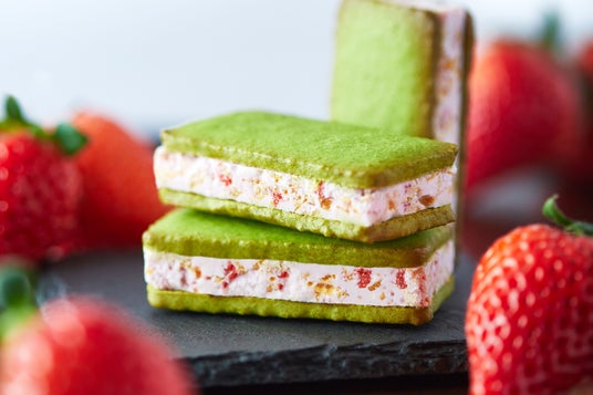 抹茶クッキーでいちごのホワイトチョコをサンド。抹茶のほろ苦さといちごの華やかな香りがざくざくとした食感とともに口いっぱいに広がります。