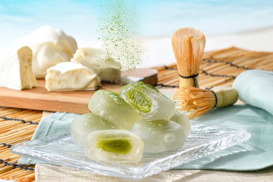 マスカルポーネチーズとカマンベールチーズをブレンドした抹茶餡を甘みのあるもちもち食感のわらび餅で包み込みました。