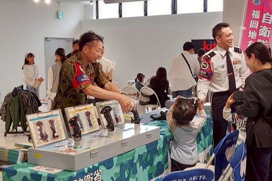会場には500名を超える家族連れが訪れ、子どもたちの真剣な眼差しと笑顔があふれる空間に。特に「防衛省自衛隊福岡地域事務所体験」のブースでは、パイロットのVR体験で楽しむ姿、「アート体験ゾーン」では思い思いに筆を走らせる創作の熱気に包まれ、会場内は終始活気に満ちていました。
