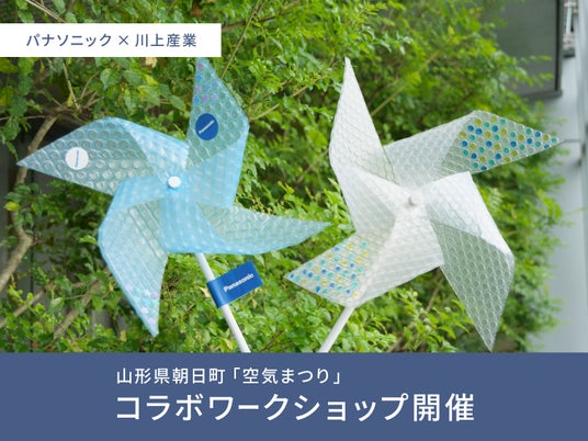 パナソニック株式会社 空質空調社(以下、パナソニック)は、2025年6月7日(土)8日(日)に山形県朝日町で開催される「空気まつり」に出展します。当日は、パナソニックの空気にまつわる最新製品の展示に加え、気泡緩衝材「プチプチ(R)」のメーカーである川上産業株式会社(以下、川上産業)と初めてコラボレーションし、プチプチ(R)を使ったオリジナル風車を作るワークショップを実施。空気や自然の大切さを広くPRします。