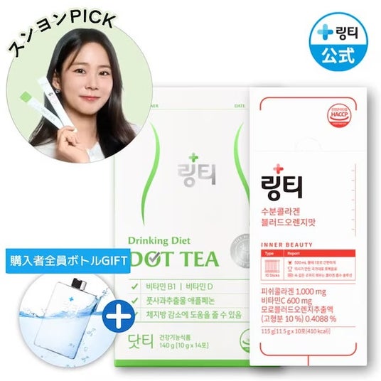Qoo10で6月に開催されるQoo10メガ割では、スンヨンさんとのコラボ商品の【 LINGTEA × KARAコラボ ♪ 】LINGTEA インナービューティーセット(DOT TEA + 水分コラーゲン + 角型ボトル)を販売いたします。送料が無料になる他、購入者全員にオリジナルボトル・リンティーオリジナル(4フレーバー)お試しセットのプレゼントもご用意しております。