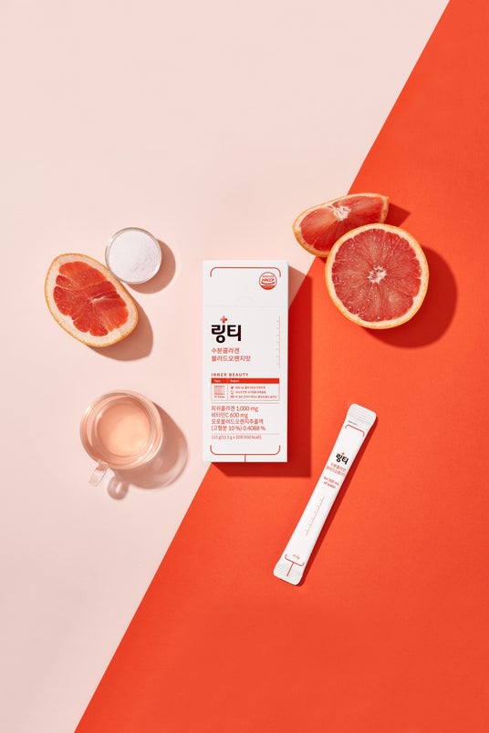 水分補給とコラーゲンを同時に摂取できるインナービューティー製品。ブラッドオレンジ味。