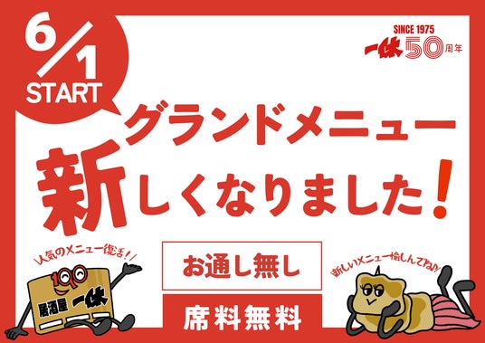 株式会社一休(本社:東京都東村山市、代表取締役:金子清範)が運営する「居酒屋一休」は、2025年6月1日にグランドメニューをリニューアルいたします。