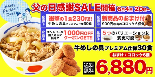 このたび松屋フーズ(本社:東京都武蔵野市、代表取締役社長:瓦葺一利)では、松屋フーズが運営する松屋 楽天市場店におきまして、「父の日セール」を2025年6月4日(水)20時~18日(水)23時59分まで開催いたします。