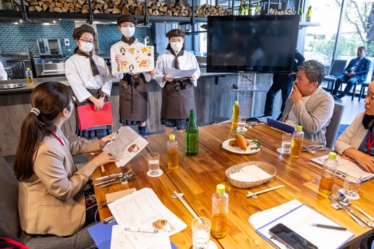 優秀作品に選ばれた8作品を会場にて調理・プレゼンテーションし、審査員が試食し5作品を