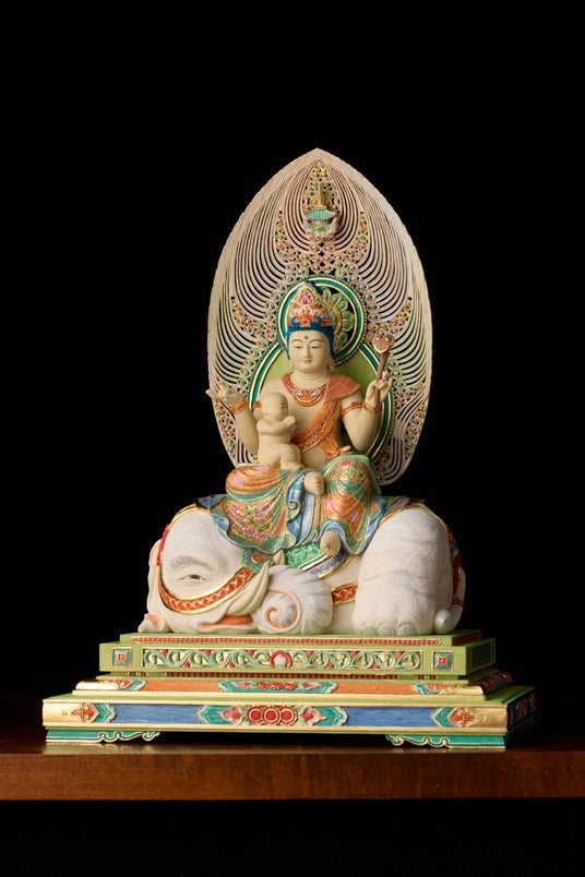 希少な香木である白檀を用いており、截金で描いた衣服の模様と風合いが見事。