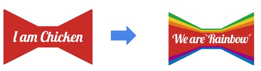 レインボーカラーをベースに多様性を受け入れる「前向きさ」を表し、ロゴを使用した商品等を通じて企業の垣根を越えた取り組みであることを示しています。