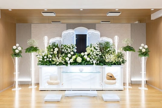 当施設は川越市内の中心部にある「JR川越駅」から車で約10分の、住宅地の一角に位置します。祭壇は、白を基調としたモダンで洋風なデザインが特徴。和洋室の親族控室やシャワールーム、バリアフリートイレも完備しているためどなたでも快適にご利用いただけます。また多死社会が進む日本で社会問題となっている「火葬待ち」に対応するため、当施設はコンパクトな造りながらも、ご遺体を一時的にお預かりする霊安室を3部屋ご用意しております。今後は、自社利用にとどまらず、他社への施設貸し出しも予定しております。