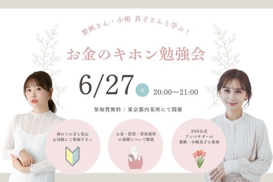 【50名限定】人気インフルエンサーの紫帆さん、小嶋真子さんと学ぶ!「お金のキホン勉強会」6月27日(金)開催!