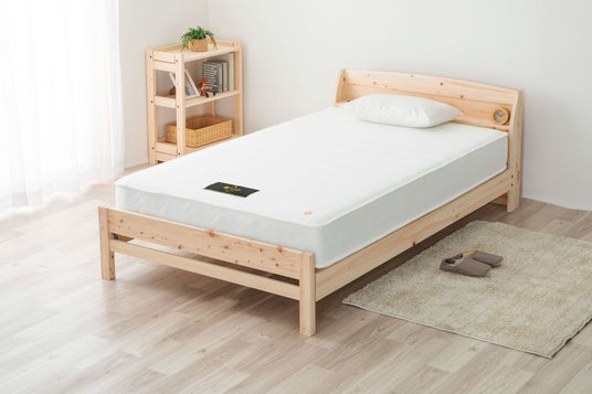 便利なコンセントと棚が付いた、大人気のすのこベッドフレーム。厳選された島根県・高知県産の最高級ひのきを全面に使用。上質な香りに包まれながら、心地よい安らぎのある睡眠をお届けします。無塗装なため、お子様にも安心してご使用いただけます。