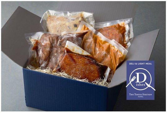 東京ステーションホテル特製のテイクアウトアイテム「Dishes」の、冷凍お惣菜セレクション。フレンチシェフ考案のお惣菜を1食分ずつ真空パック冷凍にしました。温めるだけで本格的な味わいが楽しめ、手間もゴミも少ない便利なお惣菜です。今回、新たな商品3品を含む冷凍お惣菜5種ボックスセットをご用意いたしました。