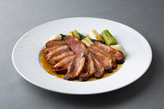 合鴨をしっとりジューシーに焼き、和風に仕上げました。冷製のままでもお召し上がりいただけます。温めたあとに表面を軽く炙ると香ばしさが引き立ちます。