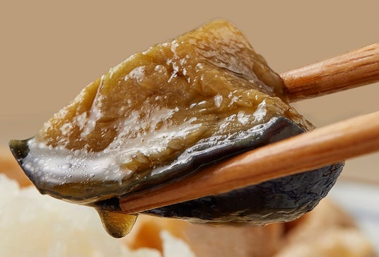 『鬼おろし豚しゃぶぶっかけうどん』と『鬼おろし鶏からぶっかけうどん』につけ合わされる茄子は、発色が良く、ツヤのあるものを選別し、収穫。すぐに油で揚げ、冷却しています。こうすることで、皮や種の変色が少なく、食欲をそそる見た目になります。だしに漬けこむひと手間があることで、うどんや鬼おろし、お肉との相性が抜群の仕立てになっています。